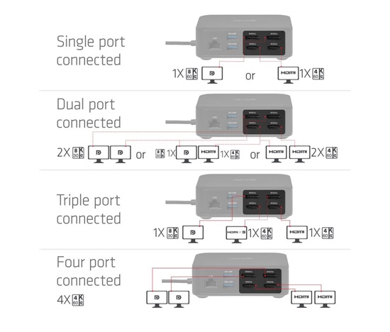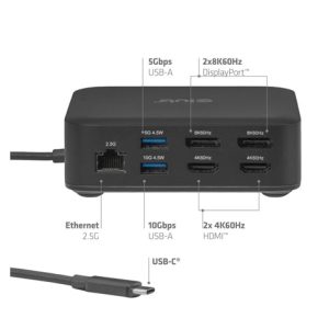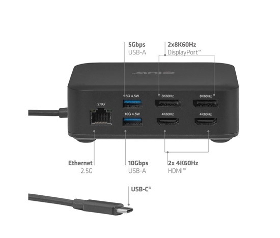 1x USB-C PD 2x HDMI 2x DisplayPort 1x Ethernet 3x USB-A 2x USB-C 1x 3.5mm Jack |