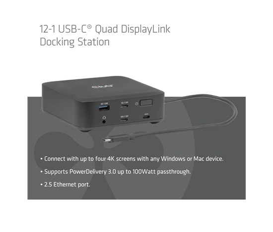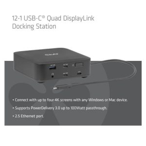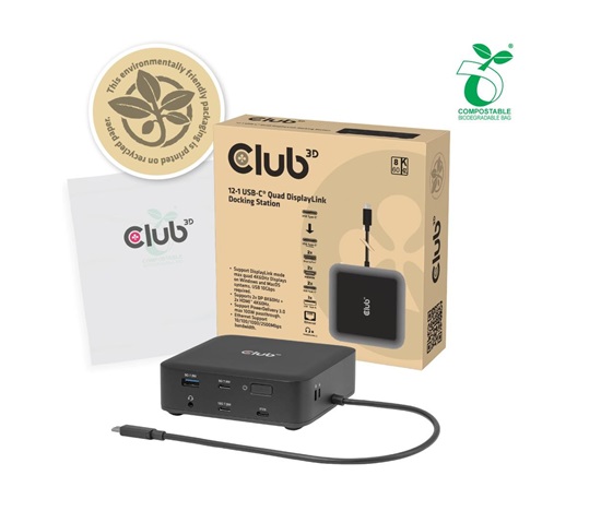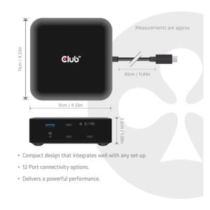 Club3D Dokovací stanice USB-C 12v1, 2xHDMI, 2xDP, 2xUSB-C, 1xUSB-C PD, 3xUSB, 1xRJ45, 1×3.5mm, černá