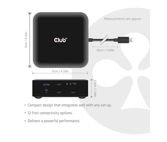 Úvod IT PC a Notebooky Dokovací stanice Club3D Dokovací stanice USB-C 12v1, 2xHDMI, 2xDP, 2xUSB-C, 1xUSB-C PD, 3xUSB, 1xRJ45, 1×3.5mm, černá