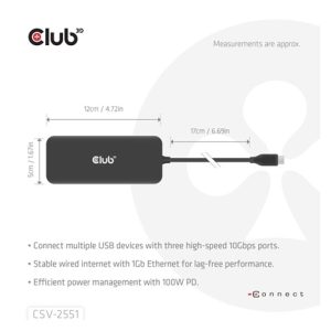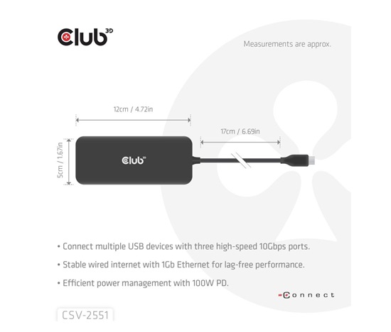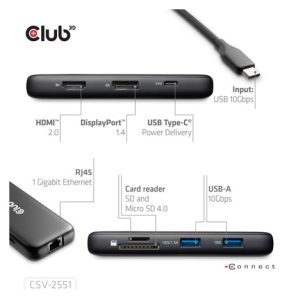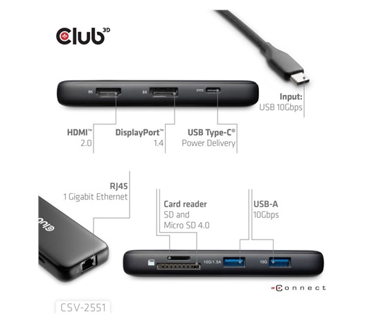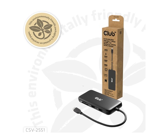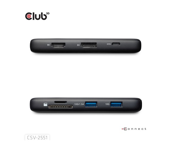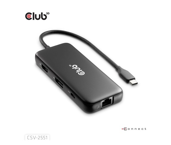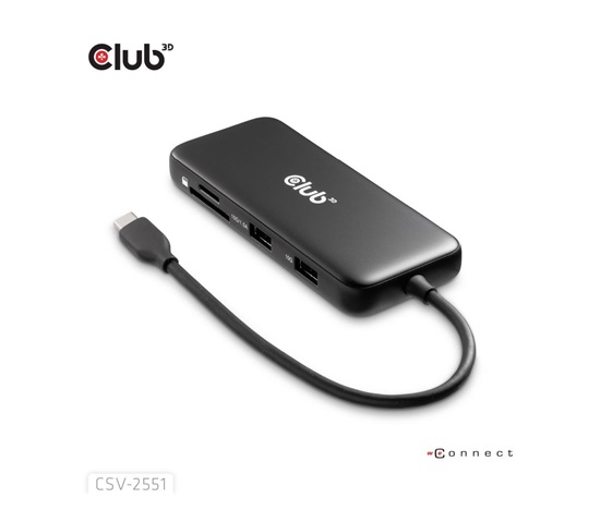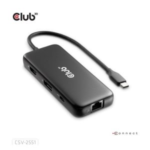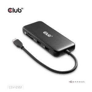 Club3D Dokovací stanice USB-C 8v1, 1xHDMI, 1xDP, 1xUSB-C, 2xUSB, 1xRJ45, černá