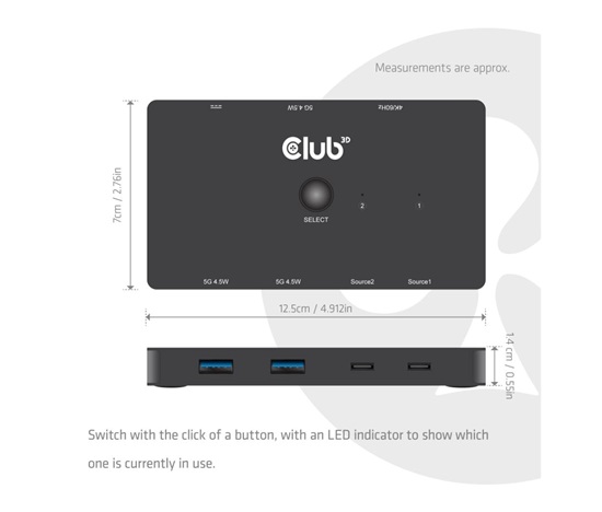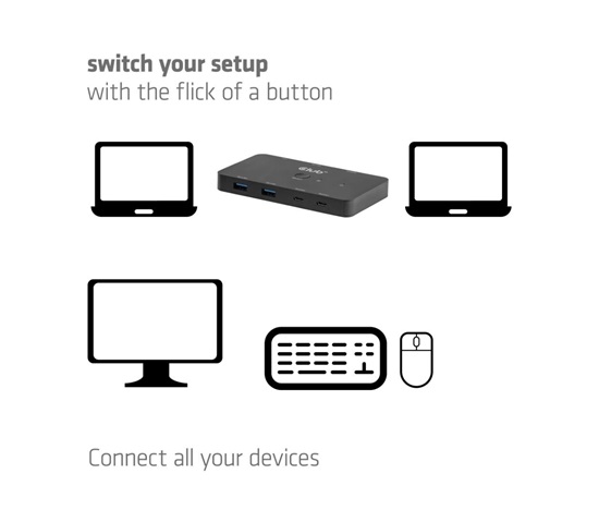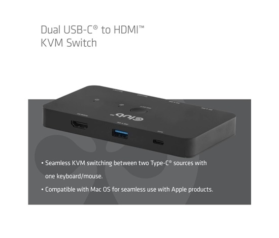 Club3D KVM Switch 2x USB-C na HDMI