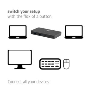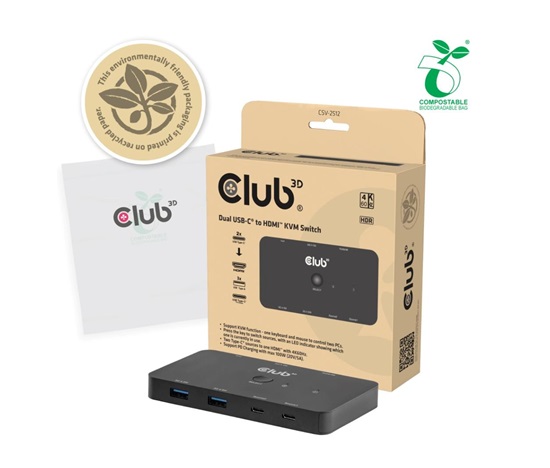 CSV-2512 je KVM přepínač umožňující připojení dvou USB-C počítačů k jedinému HDMI monitoru a sadě periferií s možností snadného přepínání zdrojů stisknutím tlačítka. Díky vstupu USB-C Power Delivery navíc zajišťuje současné nabíjení obou připojených zařízení.