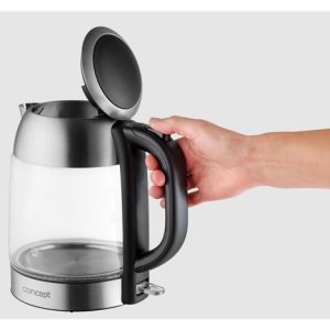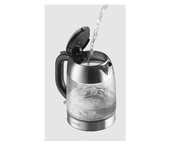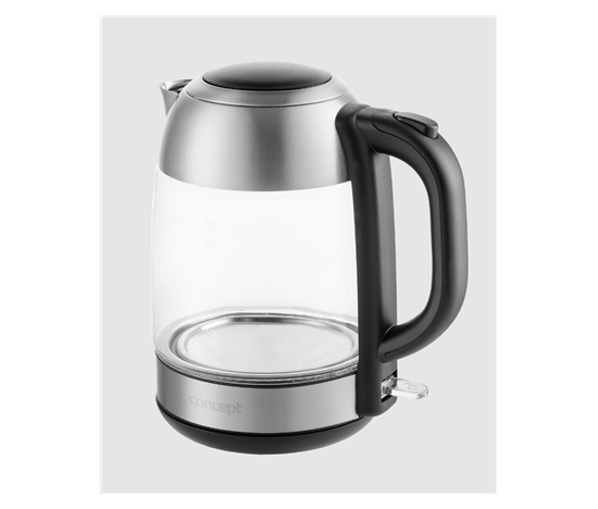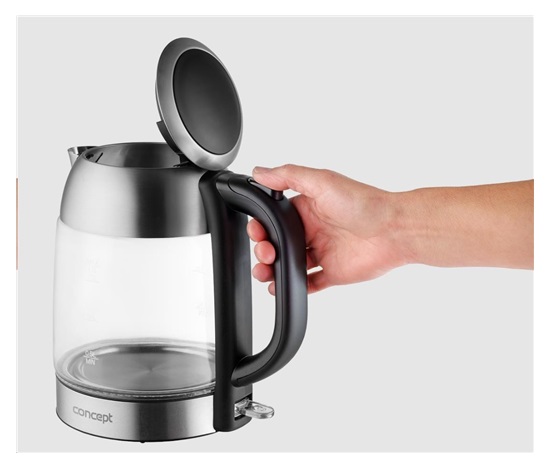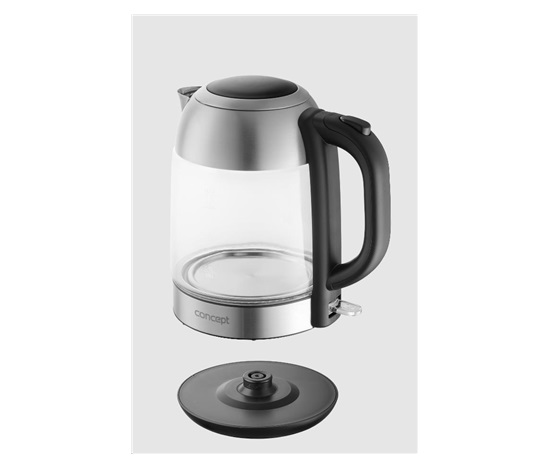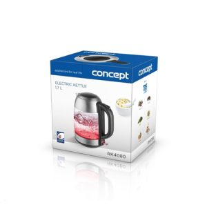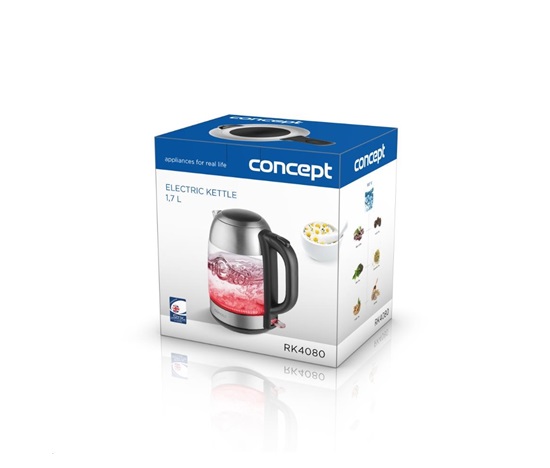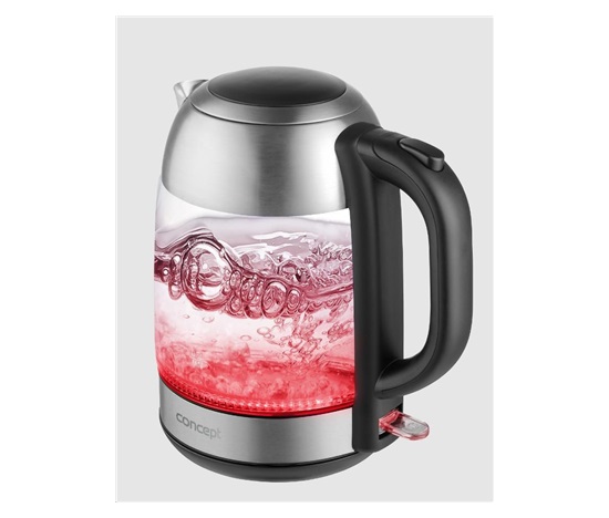 Skleněná rychlovarná konvice Concept RK4080 o objemu 1,7 l je opatřena moderním barevným LED podsvícením, díky kterému se stane ozdobou každé kuchyně.