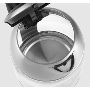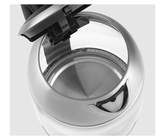 Plnění konvice je velmi rychlé. Víko otevřete pouhým stisknutím tlačítka, které je umístěné na držadle konvice. Optimálně tvarované ústí konvice vám zajistí pohodlné nalévání vody do šálků. Praktický je i jemný filtr proti vodnímu kameni, který je vyjímatelný, takže se snadněji čistí. Další výhodou je otočná základna, která zrychluje manipulaci s konvicí.