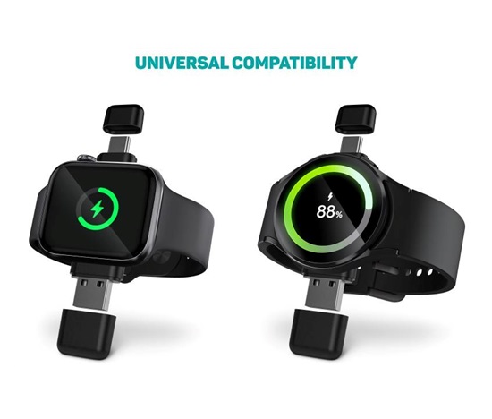 Bezdrátová nabíječka WatchTravelCharge kompatibilní jak s Apple Watch tak se Samsung Watch. Díky kompaktní velikosti je perfektním společníkem na cesty. Podporuje 2,5 W Qi nabíjení.