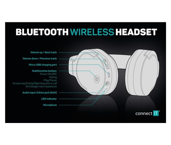 CONNECT IT bezdrátová náhlavní sluchátka, ČERNÁ