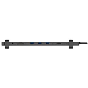Prakticky tvarovaná USB-C dokovací stanice „Multi10in1“ pro připojení až 10 periferií (2x USB-C, 1x HDMI, 3x USB-A, 3.5 mm jack, RJ45 Gigabit Ethernet. SD karta, MicroSD karta).