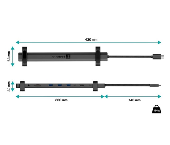 Umožní napájení a připojení dalších periferií jako jsou např. monitor, projektor, televize, myš, klávesnice, MP3 přehrávač, scanner, tiskárna, digitální fotoaparát, externí pevný disk, flashdisk, sluchátka atd. Jedná se o výborný doplněk běžných stolních počítačů i přenosných notebooků, které nemají dostatek vlastních portů. Díky svým kompaktním rozměrům se jedná o ideální příslušenství k notebookům na cesty. Pro připojení k počítači je určeno rozhraní USB-C (Type-C). Hub je možné napájet pomocí USB-C Power Delivery portu. K hubu můžete připojit jakékoli zařízení standardu HDMI, USB-C (Type-C), USB 3.0, 2.0 nebo 1.1 jako jsou myš, klávesnice, MP3 přehrávač, scanner, tiskárna, digitální fotoaparát, externí pevný disk, flashdisk atd.