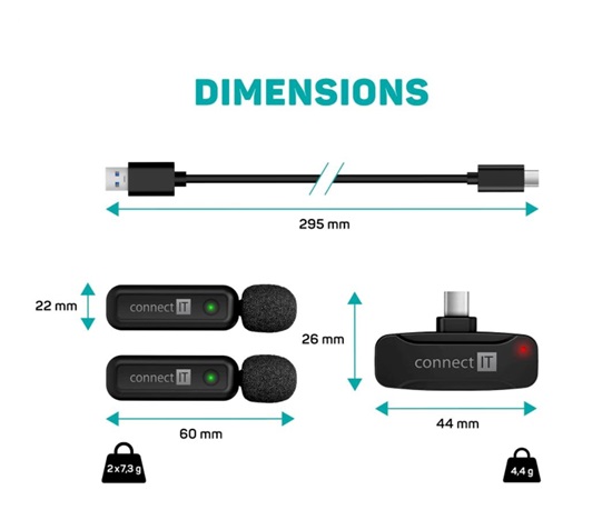 | Velikost mikrofonu | 60 x 22 x 15 mm |