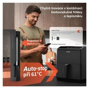 - Teploměr dokáže ovládat Smart fritézy Cosori (Dual Blaze, TwinFry, Turbo Tower Pro a Premium Smart)