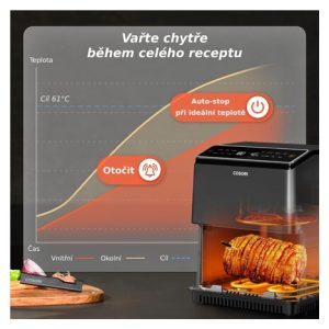 Aplikace COSORI funguje jako váš osobní průvodce vařením. Nejenže vás provede celým receptem, ale také vám v reálném čase posílá upozornění, kdy je ideální čas maso otočit nebo ho nechat odpočívat. Teploměr sleduje pokrok za vás, takže se můžete věnovat jiným věcem, aniž byste se museli obávat, že maso převaříte.