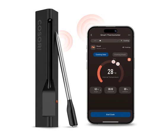 Inteligentní teploměr COSORI je navržen tak, aby se stal univerzálním pomocníkem v každé kuchyni. Lze jej bez problémů používat s různými kuchyňskými spotřebiči, jako je domácí trouba, BBQ gril, udírna nebo při vaření na klasickém sporáku. Teploměr je tak ideální pro všechny, kdo chtějí dosáhnout dokonalých výsledků bez ohledu na to, jakou metodu vaření zvolí.