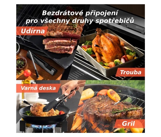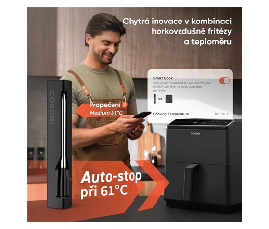 - Teploměr dokáže ovládat Smart fritézy Cosori (Dual Blaze, TwinFry, Turbo Tower Pro a Premium Smart)