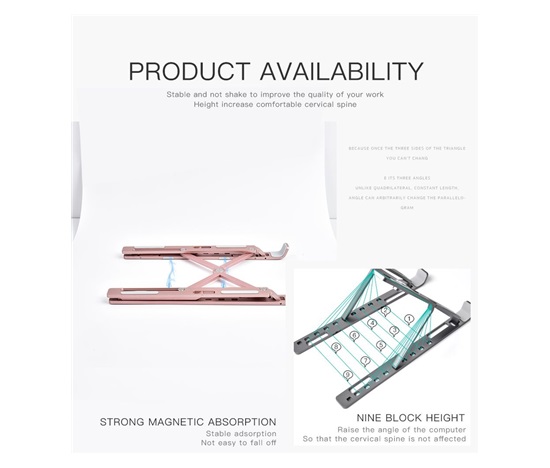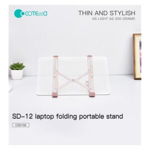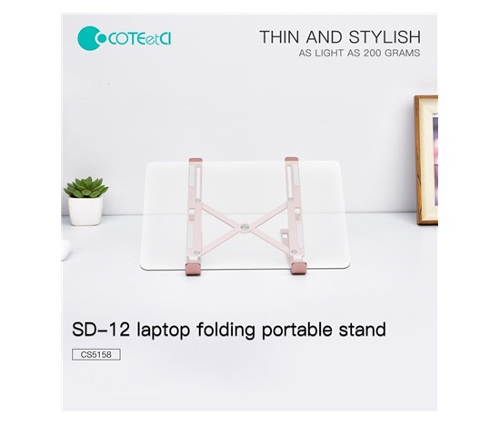 COTECi SD-12 je ergonomický, odolný a spolehlivý stojan, který je navržen pro použití s notebooky a jinými přenosnými gadgety. Díky nastavitelnému úhlu náklonu poskytuje stojan nejpohodlnější práci za notebookem. Příslušenství podporuje 9 možných poloh náklonu a může také změnit šířku instalace zařízení.