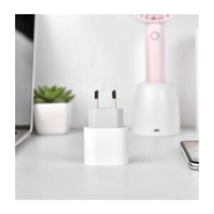 Adaptér do EU zásuvky s jedním USB-C výstupem, který podporuje PD – technologii Power Delivery. Umožňuje nabíjet s výkonem až 20W. Disponuje ochranou proti zkratu a přepětí. Od verze Apple iPhone 8 a vyšší u PD nabíjení, nabije telefon za 30 min přibližně 50% kapacity baterie. Obdobně adaptér funguje u ostatních značek a modelů podporujících rychlé nabíjení.