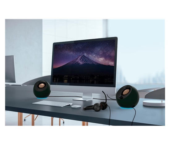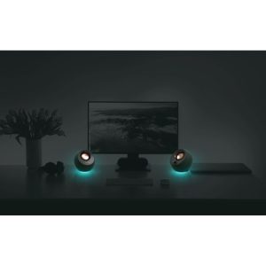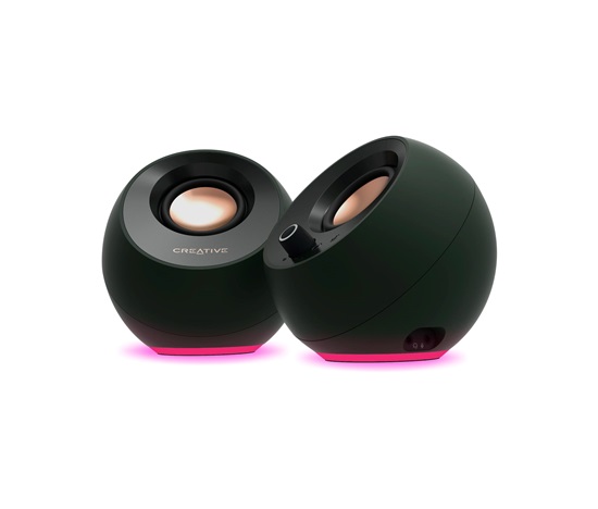 Nyní s nastavitelným osvětlením RGB! Reproduktory Creative Pebble Pro umožňují výběr ze širokého spektra barev a tří světelných efektů pomocí jednoduchého nastavení typu plug-and-play.