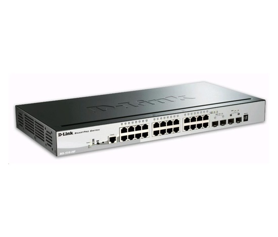D-Link DGS-1510-28P 28-Port Gigabit Stackable SmartPro PoE Switch, 24x gigabit RJ45, 2x 10G SFP+ port, 2x SFP port
