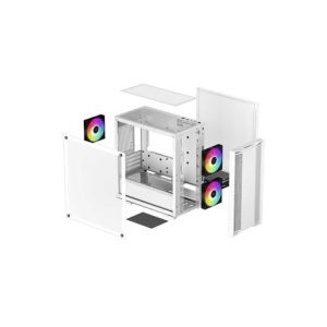 DeepCool CC360 WH ARGB je celobílá Micro-ATX skříň, která nabízí vynikající poměr cena/výkon, dostatek prostoru pro komponenty, průhledné sklo z tvrzeného skla a celkem tři předinstalované ARGB ventilátory, které zajistí, že sestava hned na začátku funguje skvěle.