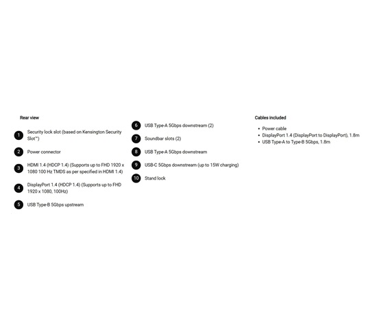 - 1 USB Type-B 5Gbps upstream port/s