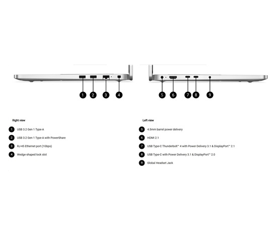 | 3-cell, 55 Wh, ExpressCharge™ Capable, ExpressCharge™ Boost Capable, 65W AC adapter, USB Type-C |