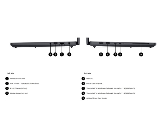 | 4 cell, 72 Whr, 100W AC adapter, USB Type C |