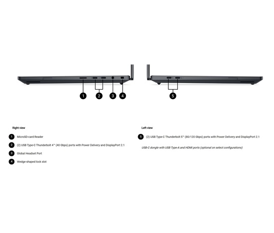 - (2) USB Type-C Thunderbolt 5™ (80/120 Gbps) ports with Power Delivery and DisplayPort 2.1
