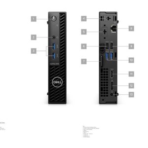 8. RJ45 Ethernet Port 9. Knock out slot for optional module 10. USB 3.2 Type-A Gen 2 (2) 11. USB 3.2 Type-A Gen 1 with Smart Power On 12. Kensington security-cable slot and Padlock ring 13. DP 1.4a (3) 14. Power Connector