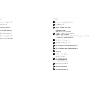 •HDMI 2.1, up to 5120 x 3200 @60Hz •DisplayPort 1.4a, up to 5120 x 3200 @60Hz •VGA, up to 1920 x 1200 @60Hz •USB 3.2 Gen 2 (10 Gbps) Type-C with DisplayPort Alt Mode port, up to 5120 x 3200 @60Hz •2 x USB 3.2 Gen 2 (10 Gbps) Type-A Ports