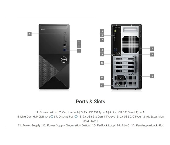 Úvod IT PC a Notebooky PC sestavy DELL PC Vostro 3030 MT/TPM/i5 12400/8GB/1TB SSD/Intel UHD/WLAN/Kb/Mouse/W11 Pro/3Y PS NBD