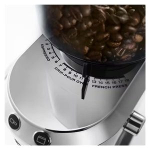 Regulátor mletí lze nastavovat v 18 stupních,takže máte naprostou kontrolu nad hrubostí mletí a můžete si svoji kávu podle libosti přizpůsobit.