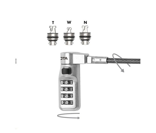 Universal Security Cable Lock, 3 Exchangeable heads fits all slots, combination