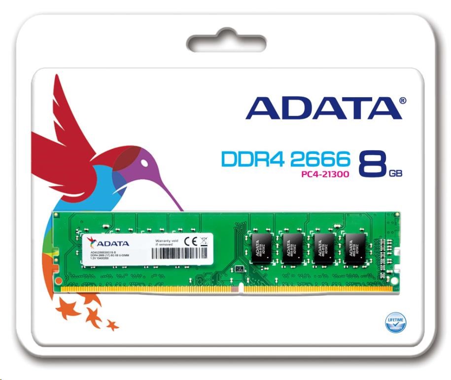 ADATA Premier DDR4 2666 unbuffered-DIMM memory is the latest upgrade solution that supports Intel’s newest platforms for faster data transfer and enhanced power efficiency. Utilizing a 288-pin design, operating voltage has been reduced from 1.5V on DDR3 to 1.2V, which not only helps save power by 20%, but also boosts transfer bandwidth speed to 21.3GB/s. Every chip in ADATA memory modules meets strict JEDEC and RoHS standards, ensuring compatibility, stability, and environmentally friendly products.
