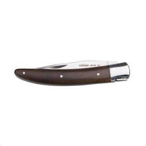 Kapesní víceúčelový nůž, zavírací mechanizmus s částečnou fixací pracovní polohy v přední části rukojeti typickou „včelkou“, speciální nerezová ocel 420 pro dlouhou životnost 94/2,3 mm ostří, prakticky tvarovaná rukojeť z BlackWood dřeva, hmotnost 84g. Pojistný zámek mechanizmu částečně brání nechtěnému sklopení ostří při práci s nožem. BlackWood – tmavé hnědo/černé dřevo s hladkým povrchem pro příjemné držení. Ideální nástroj pro myslivost a jiné outdoorové aktivity – například kemping.