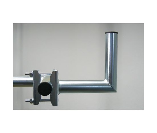 Držák vhodný k připevnění na balkónové zábradlí nebo vodorovnou trubku, pro uchycení satelitních parabol a větších antén.