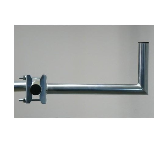 Držák vhodný k připevnění na balkónové zábradlí nebo vodorovnou trubku, pro uchycení satelitních parabol a větších antén.
