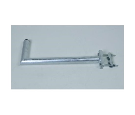 Držák vhodný k připevnění na balkónové zábradlí nebo vodorovnou trubku, pro uchycení satelitních parabol a větších antén.