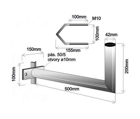 Držák antény na stožár s vinklem, galvanický zinek, délka 50cm