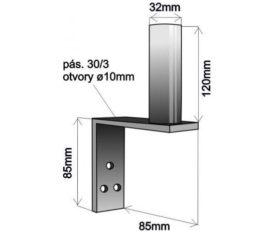 Držák antény na zeď mini, galvanický zinek, délka 8,5cm, výška 12cm