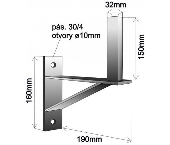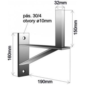Držák antény na zeď se vzpěrou, galvanický zinek, délka 19cm