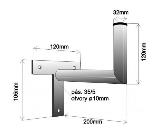 Držák antény na zeď, tvar T mini, galvanický zinek, délka 20cm