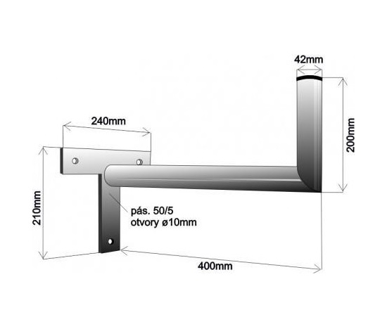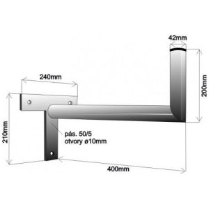 Držák antény na zeď, tvar T, žárový zinek, délka 40cm
