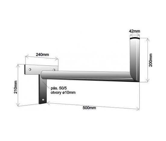 Držák antény na zeď, tvar T, žárový zinek, délka 50cm