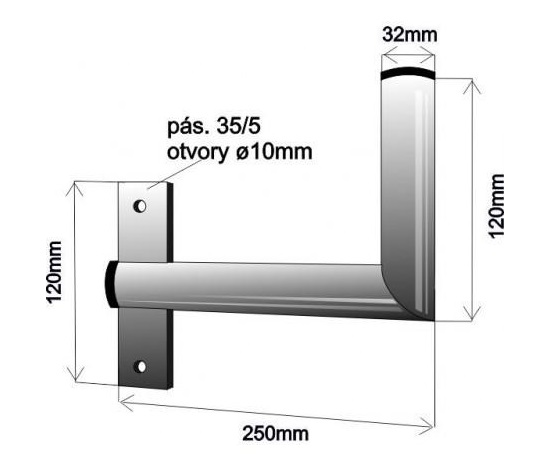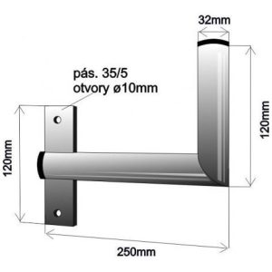 Držák antény na zeď u okna s pásem, levé uchycení, galvanický zinek, délka 25cm, průměr 3,2cm