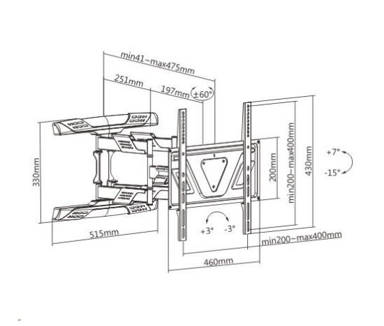 výsuvný, nastavení vzdálenosti od zdi 41mm až 475mm