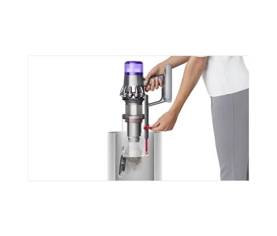 Vysavač Dyson V11™ se zasouvá do úchytu na stěně, který slouží k nabíjení vysavače i úhlednému uložení příslušenství. Vysavač je tak po ruce a připravený k příštímu použití.