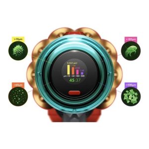 Výkonný bezdrátový akumulátorový vysavač Dyson V12™ Detect Slim Absolute vhodný na všechny druhy podlah, pro alergiky a antibakteriální, na suché čištění, na vysávání, s Li-ion baterií, dobou provozu 60 min, dobou nabíjení 4 h, HEPA filtrem, sběrnou nádobou o objemu 0,35 l, ovládáním na těle a regulací výkonu.