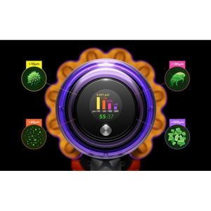 Vysavač Dyson V15 Detect Fluffy je osazen dokonale utěsněným filtračním systémem, který zatytí až 99,97 % mikroskopických částic a alergenů od velikosti 0,1 mikronu. Speciální filtr z antibakteriálního materiálu navíc zadrží i bakterie a viry. Vzduch vycházející z vysavače je tak čistší než vzduch ve vašem domově.