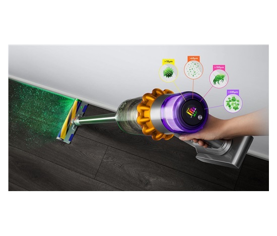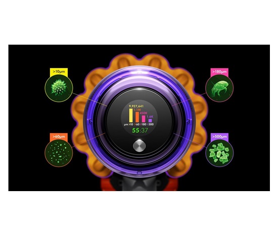 Vysavač Dyson V15 Detect Fluffy je osazen dokonale utěsněným filtračním systémem, který zatytí až 99,97 % mikroskopických částic a alergenů od velikosti 0,1 mikronu. Speciální filtr z antibakteriálního materiálu navíc zadrží i bakterie a viry. Vzduch vycházející z vysavače je tak čistší než vzduch ve vašem domově.