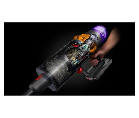 Dyson V15 Detect Fluffy využívá nejmodernější cyklonovou technologii Root Cyclone, která odděluje prach od vzduchu pomocí odstředivé síly. 14 cyklonů vytváří až 100 000 G a spolehlivě zachytává nečistoty ve vysavači. Nedochází tak ke ztrátě sacího výkonu.