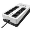 | Zvláštní charakteristiky | Atraktivní design a lesklý povrch činí z Eaton 3S perfektní řešení pro moderní kancelářské prostředí Kompaktní jednotku lze umístit na stůl nebo pod něj, případně ji lze připevnit na zeď Vysoce výkonná přepěťová ochrana splňující normu IEC 61643-11 Ochrana datové linky zajišťuje přepěťovou ochranu internetu (včetně xDSL) 2 integrované USB porty pro nabíjení mobilních zařízení 8 zásuvek pro připojení PC + periferií Zásuvky French (FR) pro snadné připojení USB port kompatibilní se standardem HID (kabel součástí příslušenství) pro automatickou integraci s hlavními operačními systémy (Windows / Mac OS / Linux) Snadno vyměnitelné baterie napomáhají delší životnosti systému UPS |